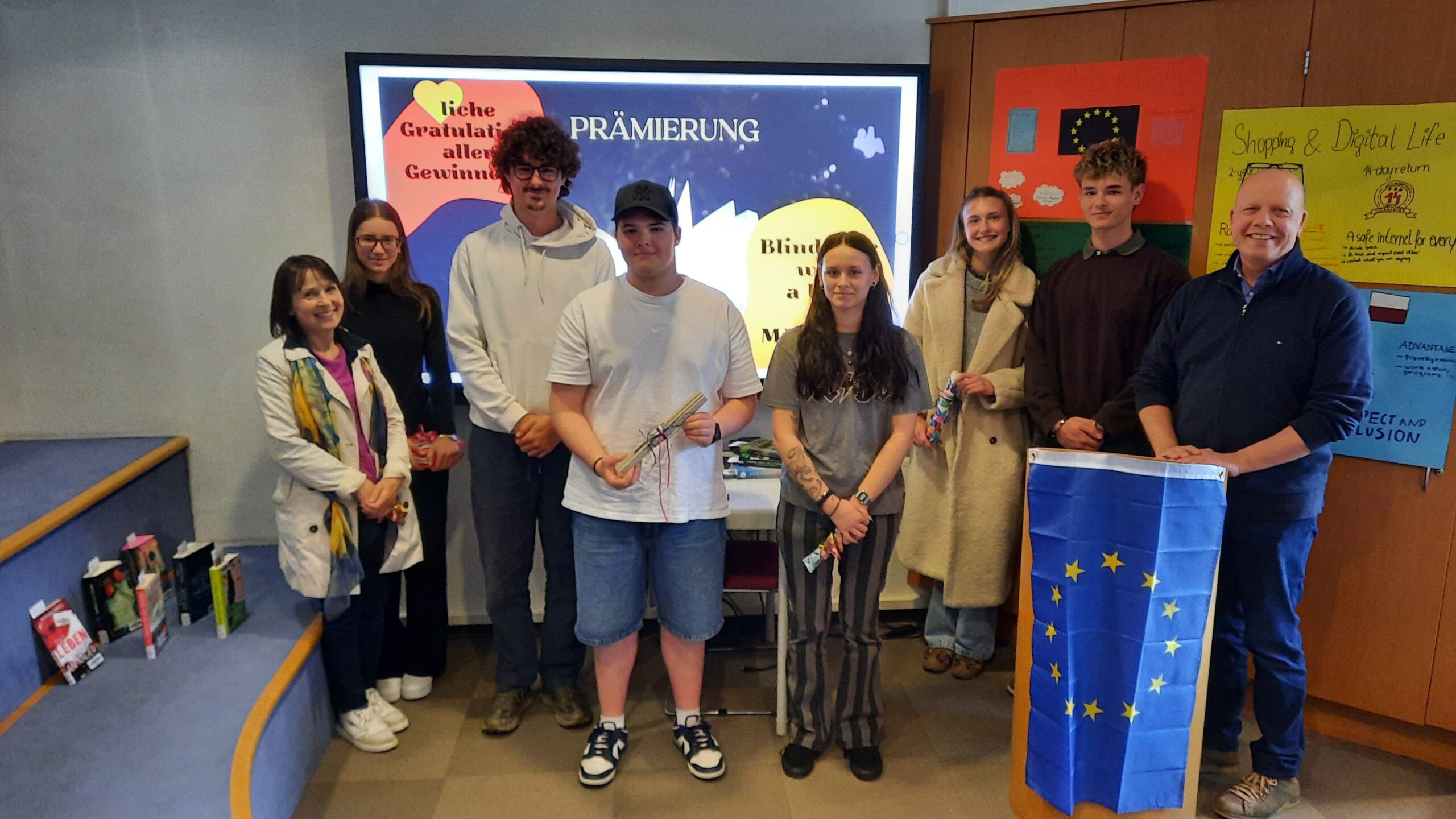 Während der Pause fand am Mittwoch, 15. April 2026 die Prämierung der Siegerklassen des Zeitschriftenwettbewerbes „Catch the news“ und der Gewinner der Aktion „Blind date with a book“ durch Herrn Direktor Raffeiner statt.
