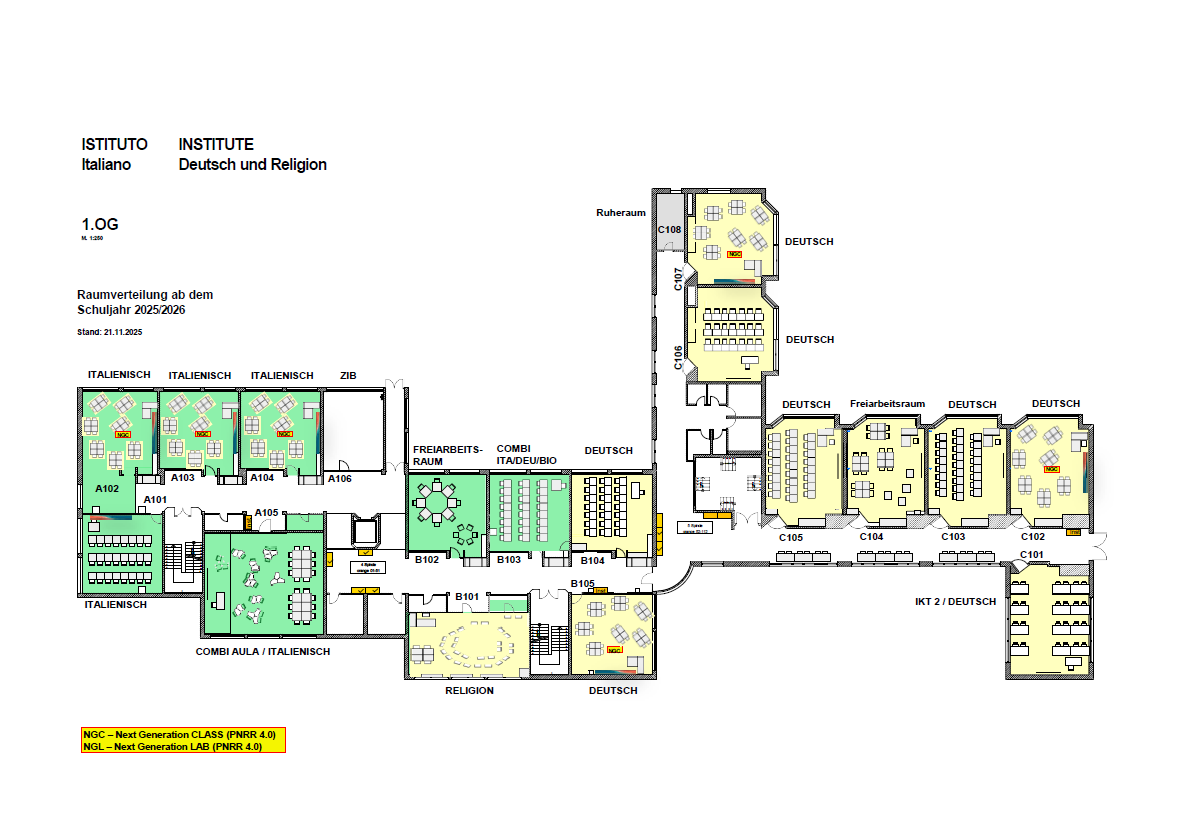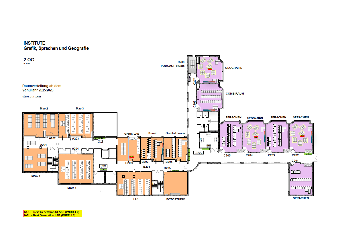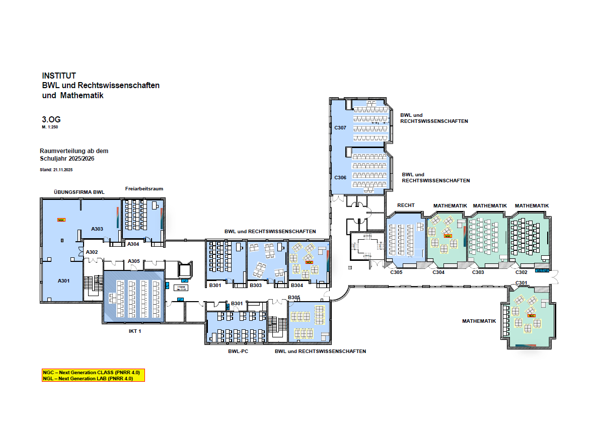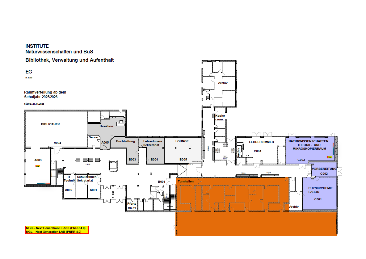 Da die Schule mit dem Fachraumprinzip arbeitet, gibt es keine Klassen mehr, sondern Fachräume, welche den sog. Instituten zugeordnet sind.